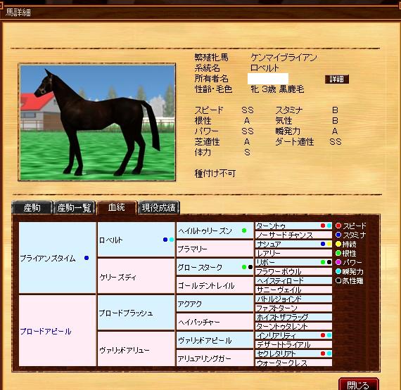 ケインマイブライアン(牝3)『ブライアンズタイム×ブロードアピール』