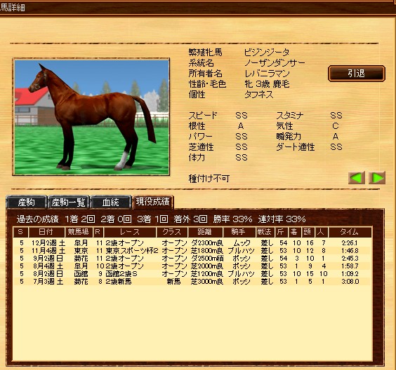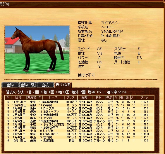 やっぱ、お金使わないとだめなのかなぁ~なんてことを ずっと考えているわけで... 自家生産馬(肌馬)2頭紹介しますが どちらも、持続SS確認済。表パラも見たとおりで、現役成績が この程度って...明らかにどちらもパラだけみれば、OP重賞級の はずなのに... やっぱり、P牝馬みたいな裏パラ的なものが足りてないのだろう か... 見るに見兼ねて?コルツのみんなが私に肌馬をくれる