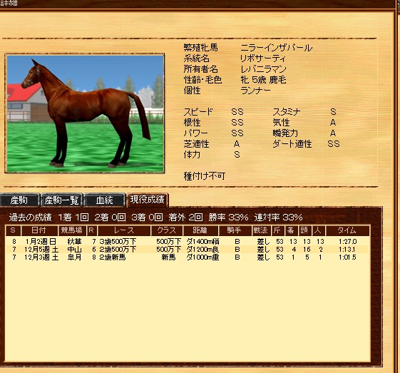 競走馬育成オンラインゲーム”競馬伝説”(京都サバ)でプレイ中のレバニラマンがお送りする、ブログ「レバブロ」